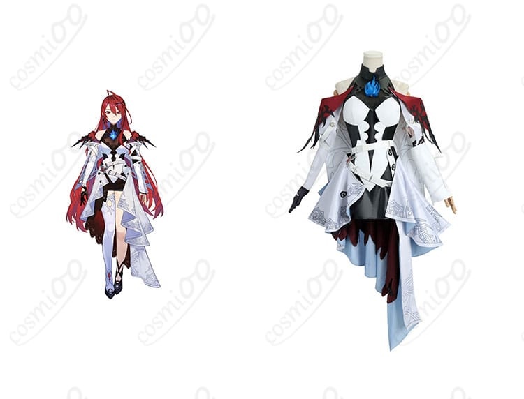 エリザベス・ローズ・ブラッドフレイムらしい、気品と炎のような存在感をまとえる一着です。深みのある配色に、揺れ感のきれいなマントや装飾を重ねたデザインは、ステージ映えはもちろん、撮影でもしっかり雰囲気を作りたい方にぴったり。クールでミステリアス、それでいて華やか。そんなキャラクターの空気感をコーデ全体で楽しめます。